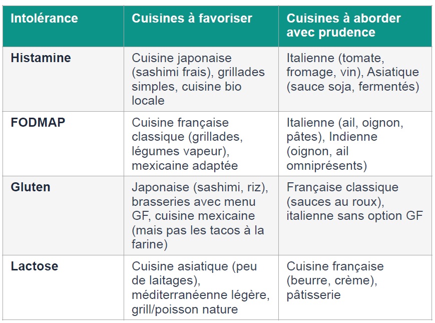 Selon votre intolérance, certaines cuisines sont naturellement plus